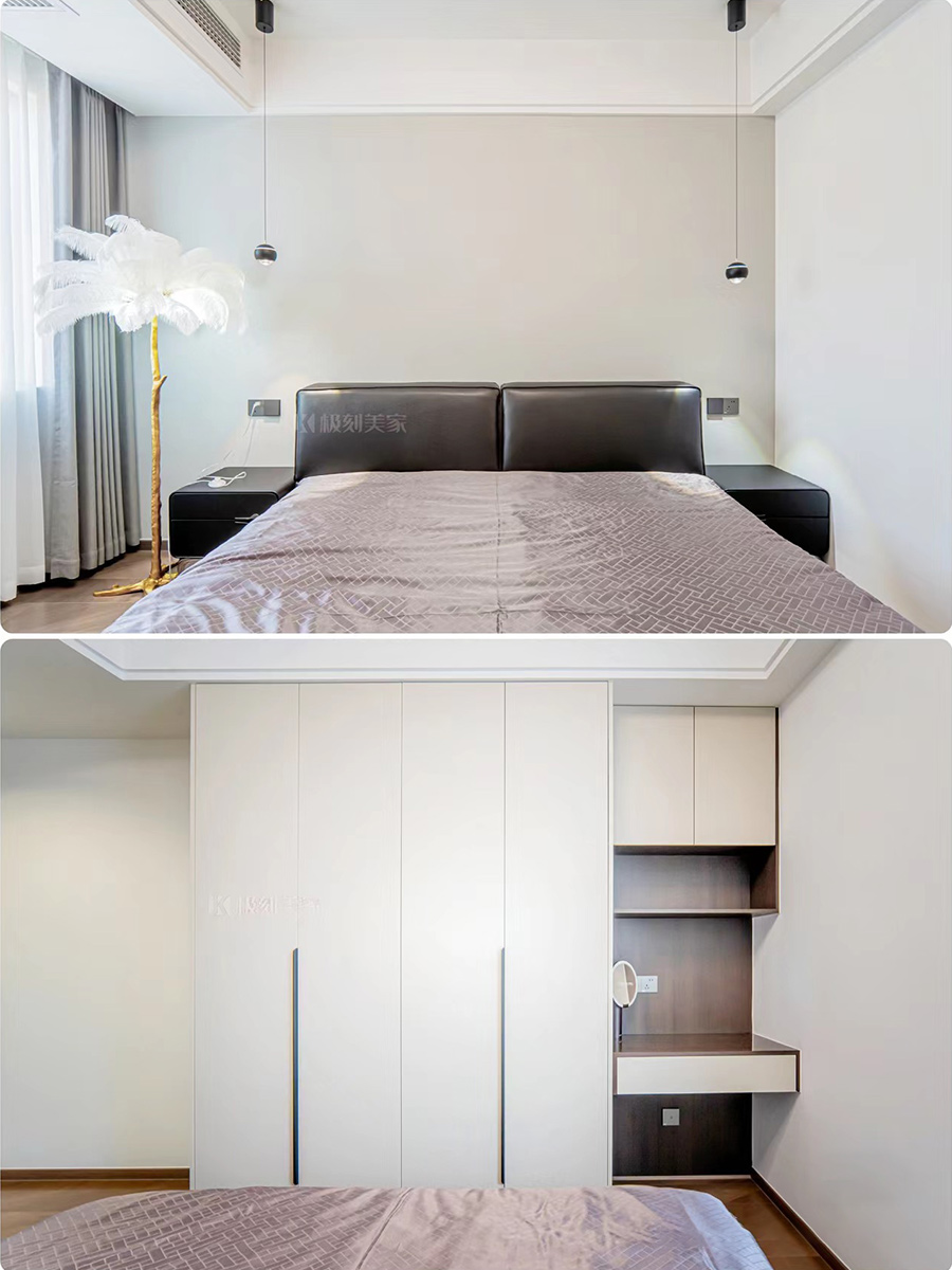 卧室衣柜采用书柜一体化设计,更大限度的利用空间