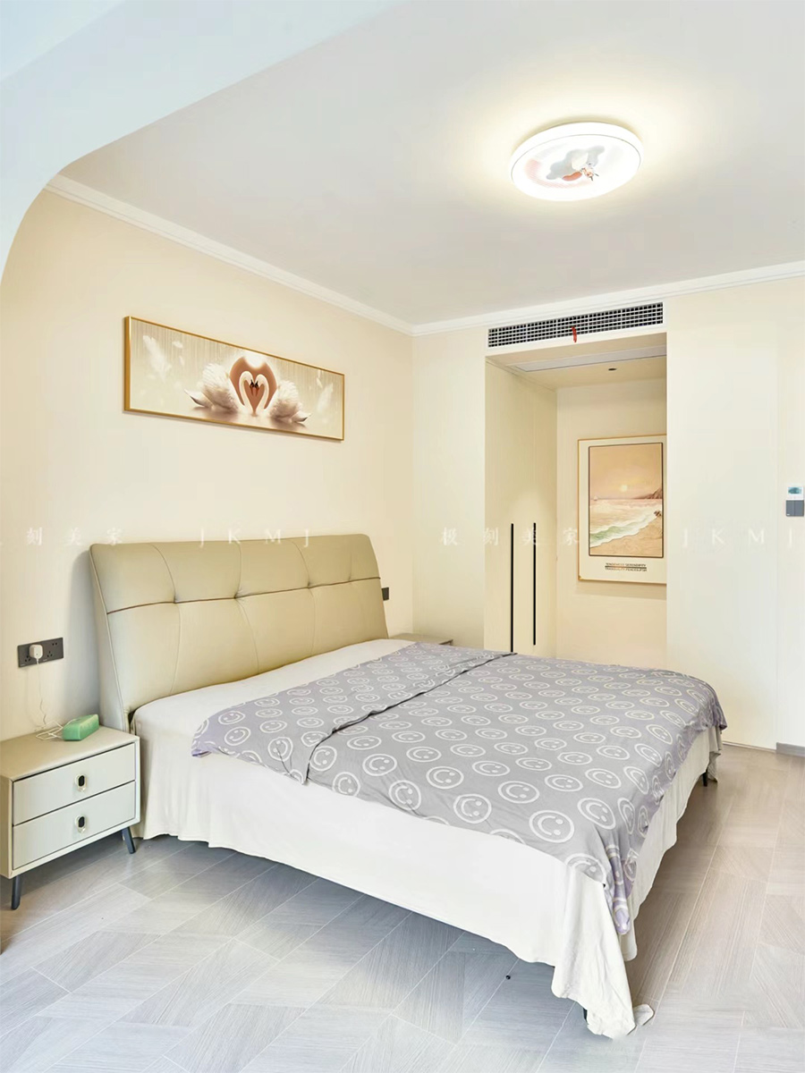 全屋以浅色系为主色调,象牙灰+珍珠白的柜子,整体风格更统一