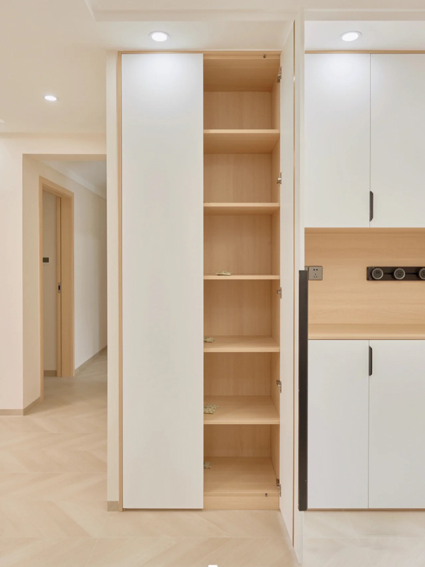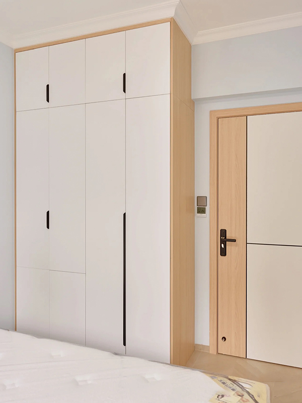 全屋木制搭配白色柜子,简单耐看,这套107平米的房子做到储物空间大化,好看又实用。