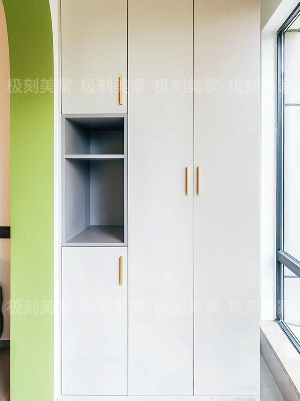 全屋高端定制:柜体板材18厚杉木实芯板,柜门有pet肤感、高光、超晶、五金使用原装进口奥地利百隆五金