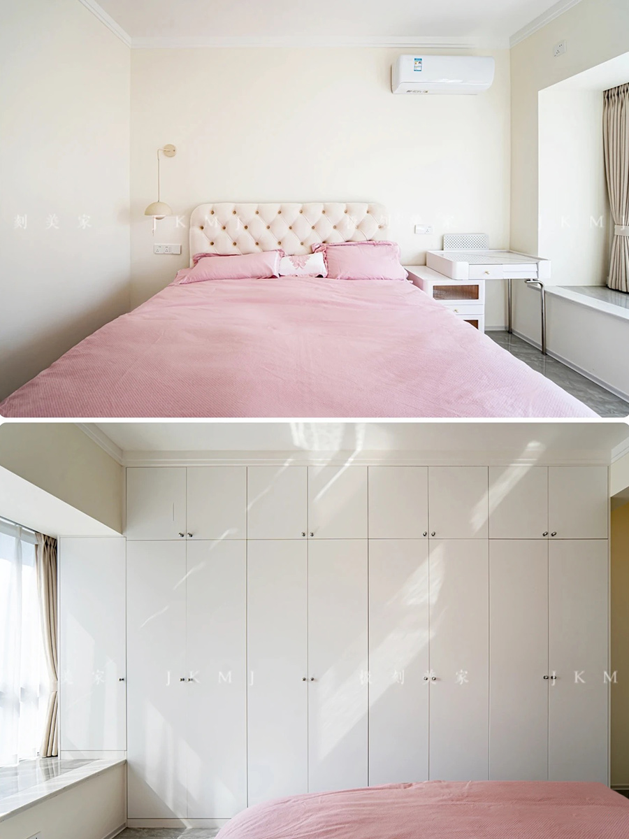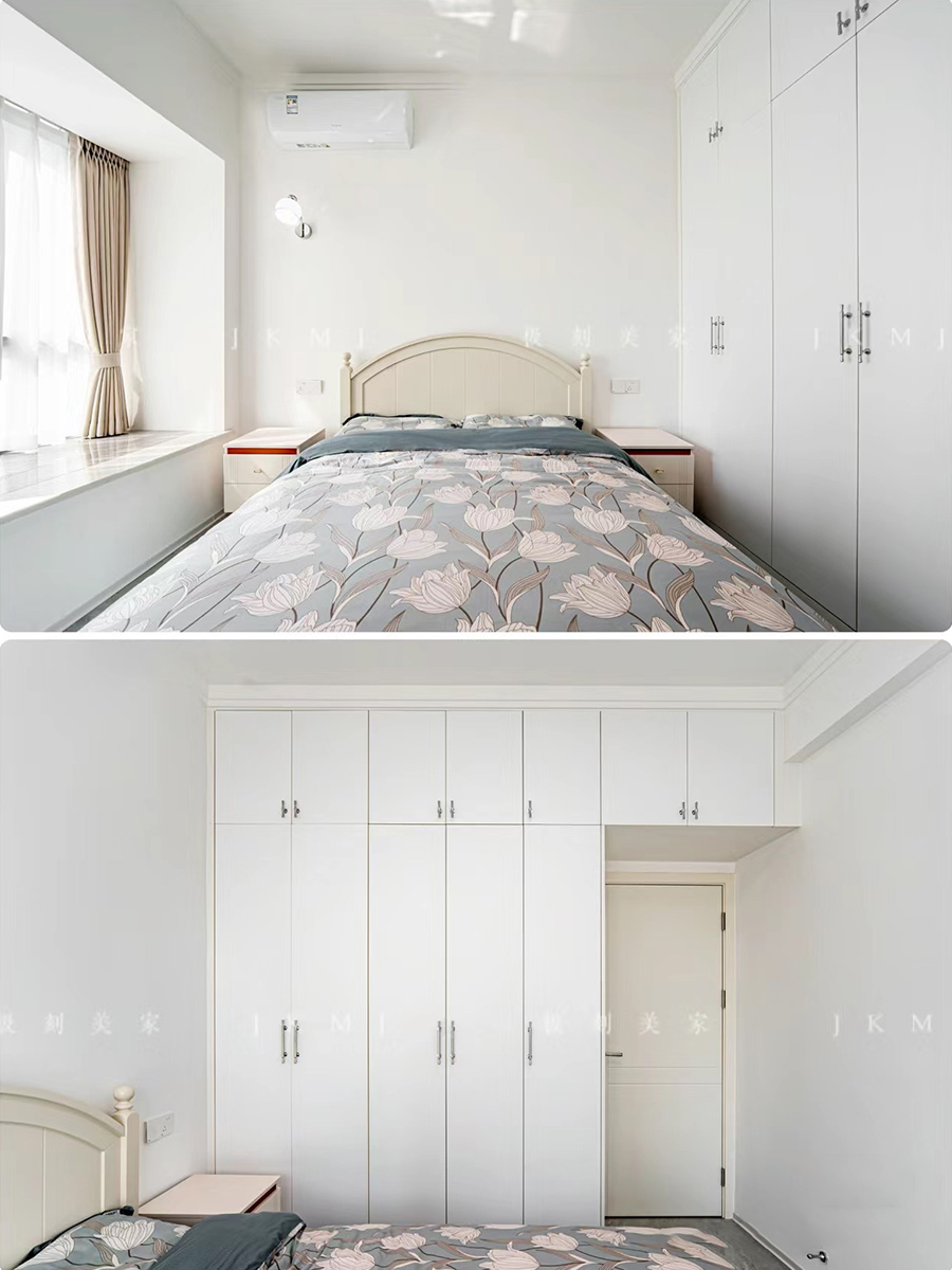 卧室柜采用琥珀白搭配软装家具,营造出温馨自然的氛围