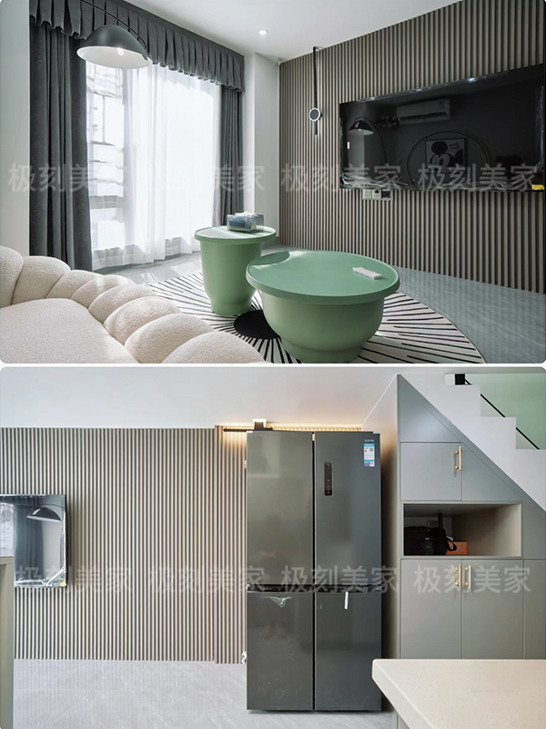电视背景墙采用布里奇橡木格栅,高级又好看