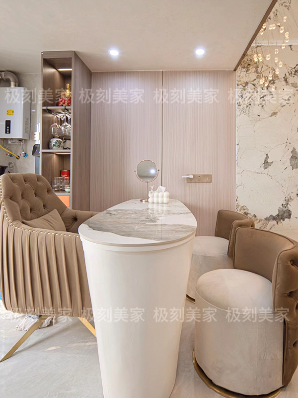 金属配饰和岩板纹理的混搭,创造出丰富的层次感