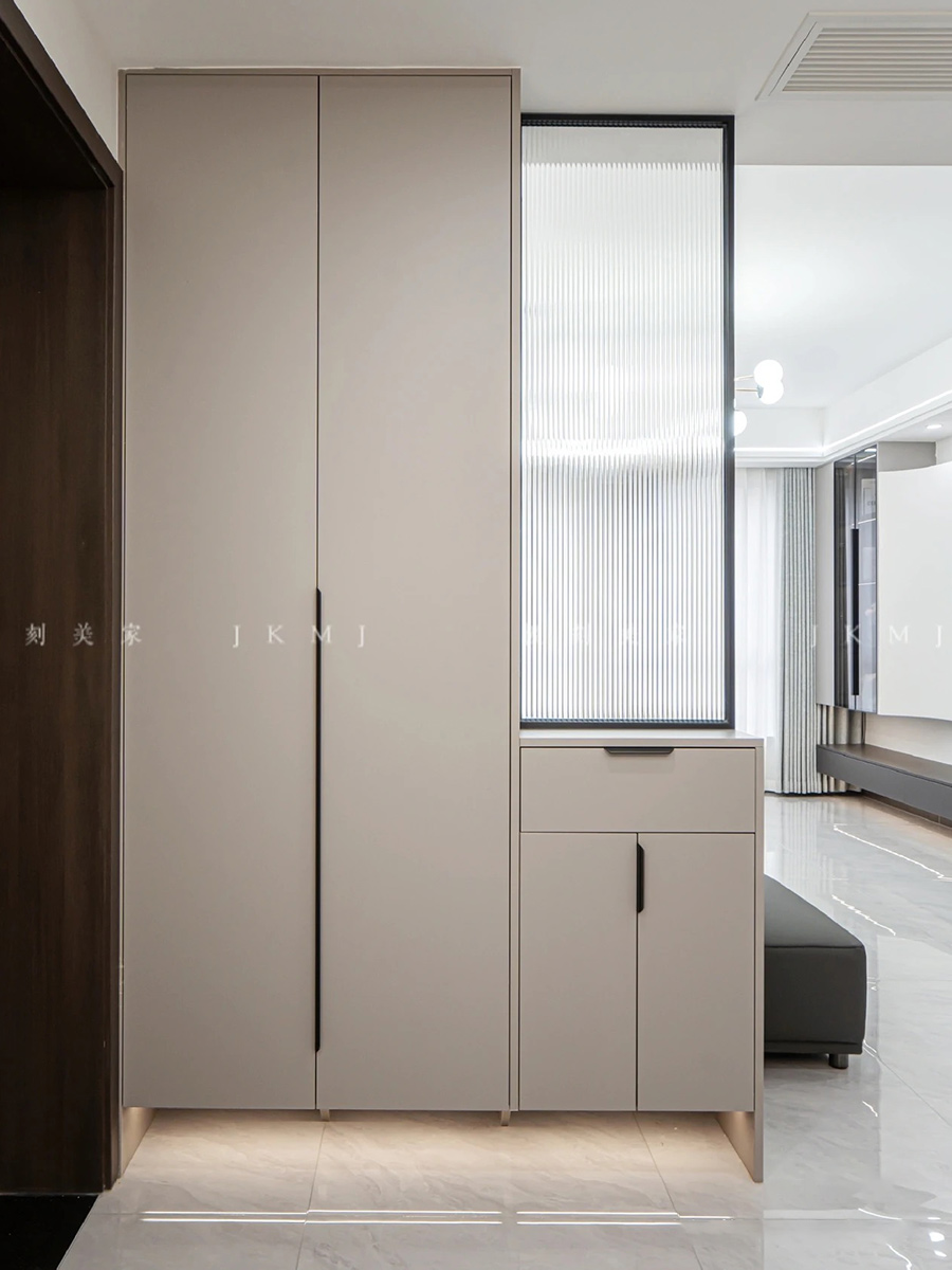 入户柜做玻璃屏风隔断,整体空间架构更明显