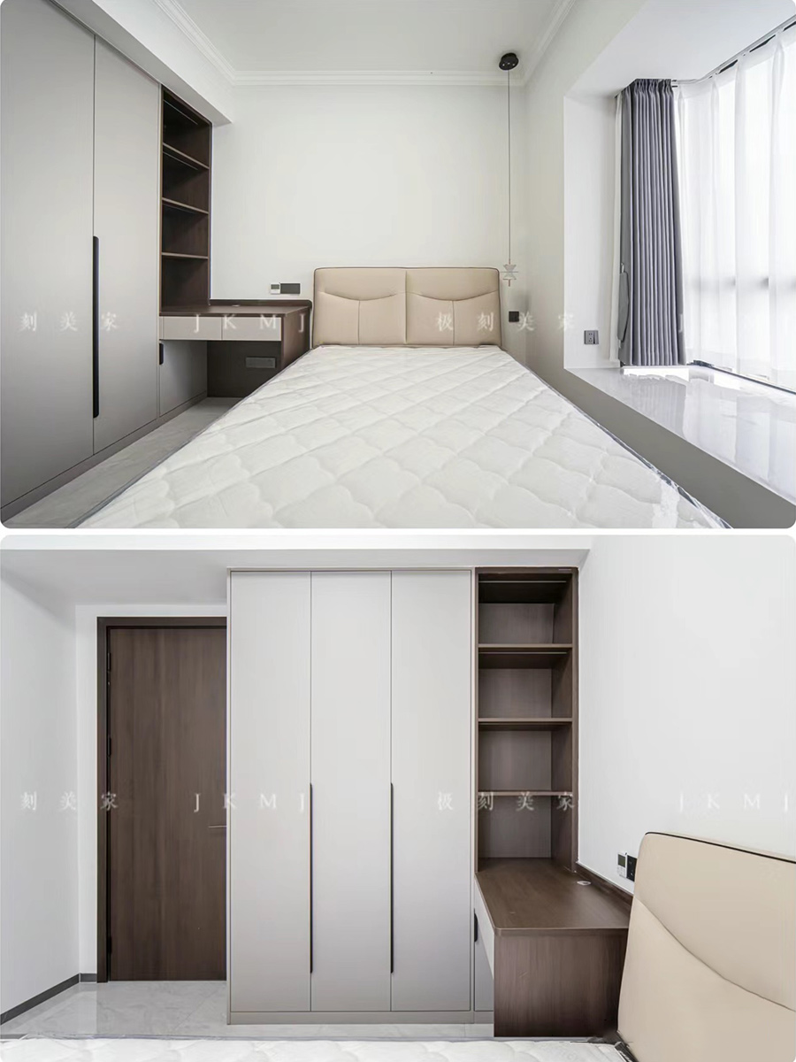 卧室做衣柜书桌一体化设计,满足收纳空间