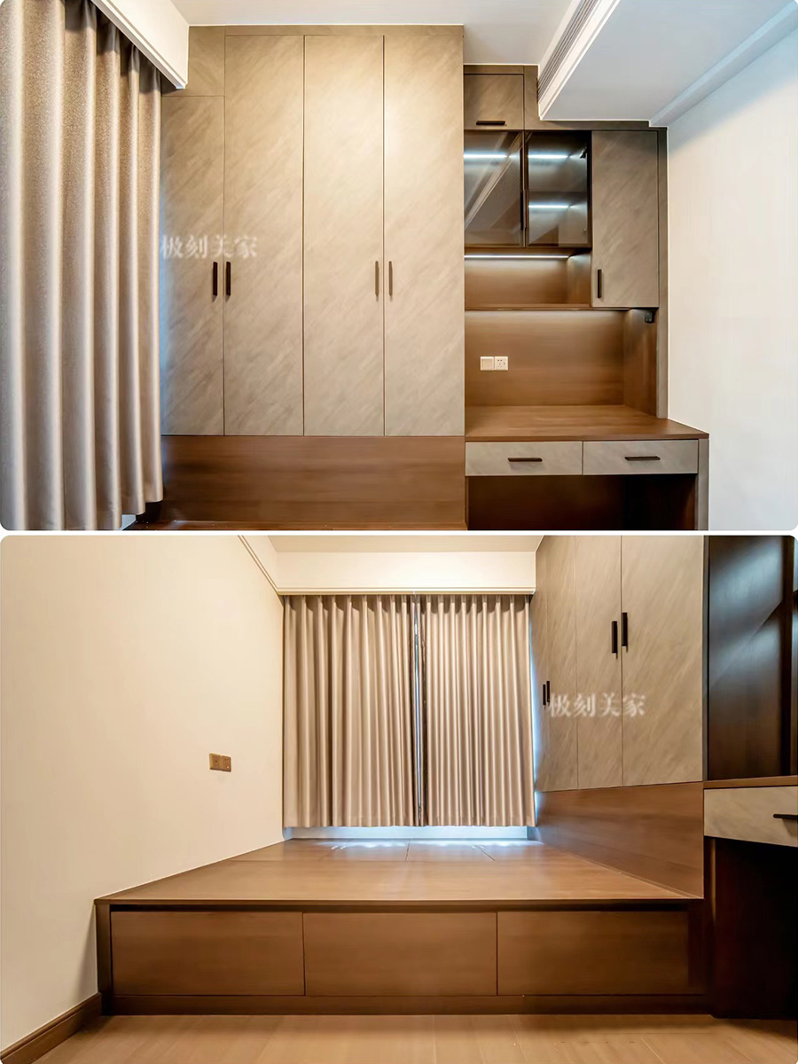 卧室衣柜、书桌和榻榻米一体化设计,大化利用空间