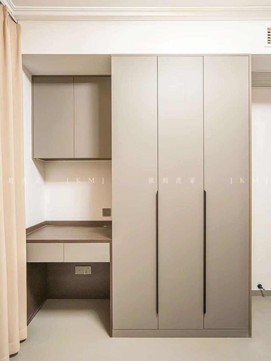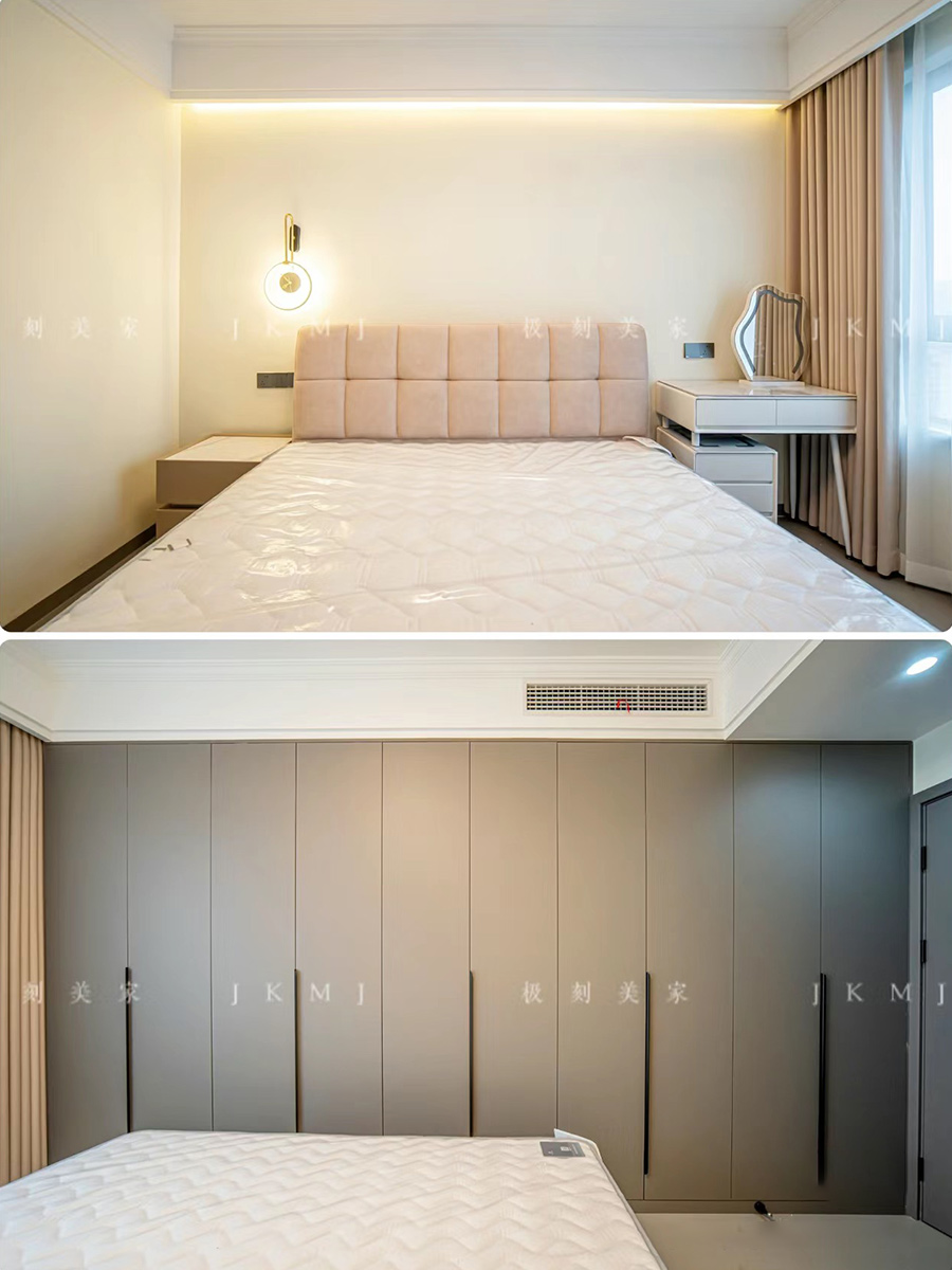 卧室做满墙一门到顶衣柜设计,充足的收纳空间,女主人的衣服也不用愁