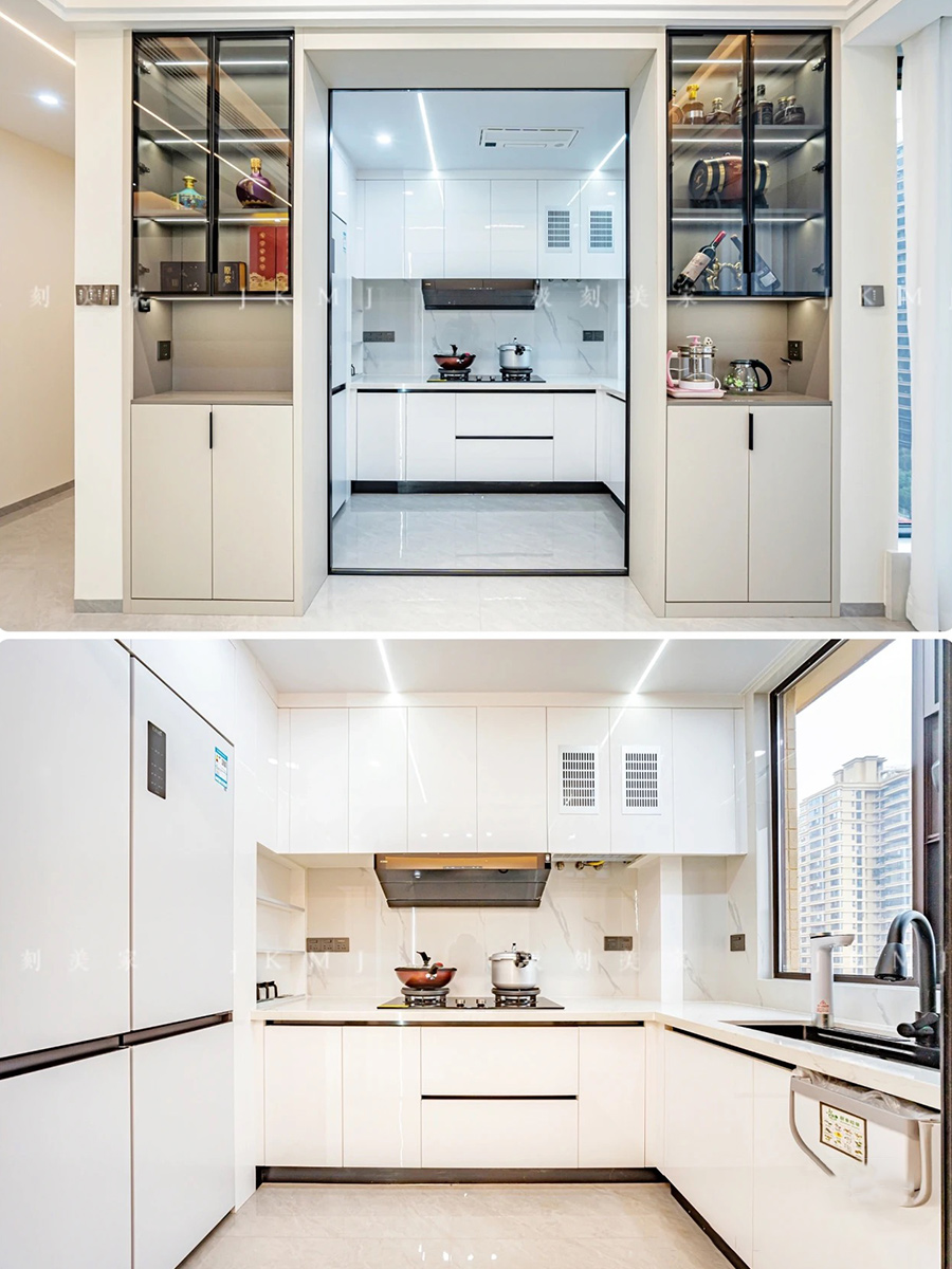 全屋高端定制:柜体板材18厚杉木实芯板,柜门有pet肤感、高光、超晶、五金使用原装进口奥地利百隆五金