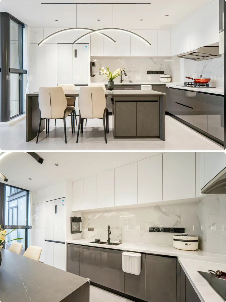 全屋高端定制:柜体板材18厚杉木实芯板,柜门有pet肤感、高光、超晶、五金使用原装进口奥地利百隆五金