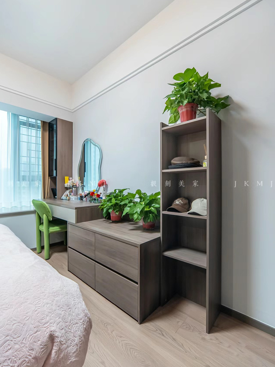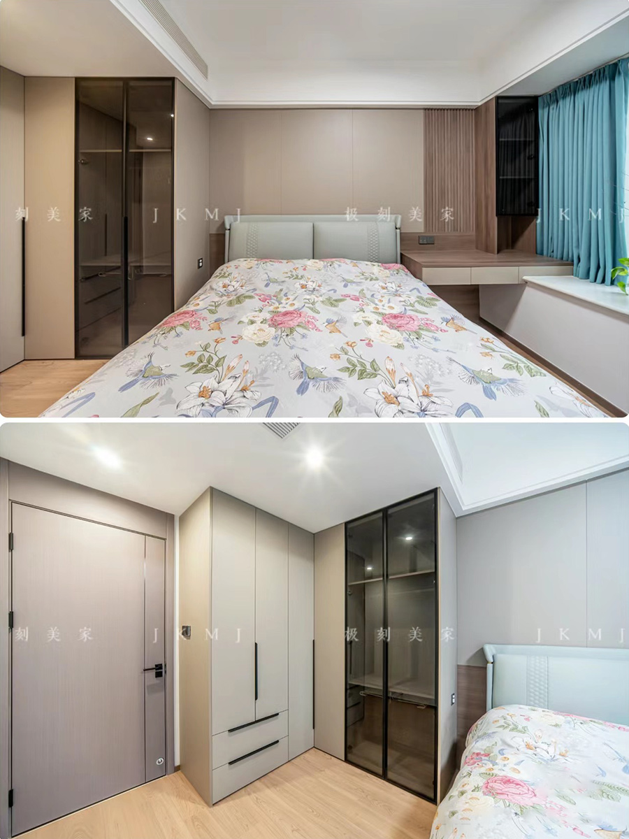 主卧充分利用飘窗空间,打造收纳柜,满足储物需求