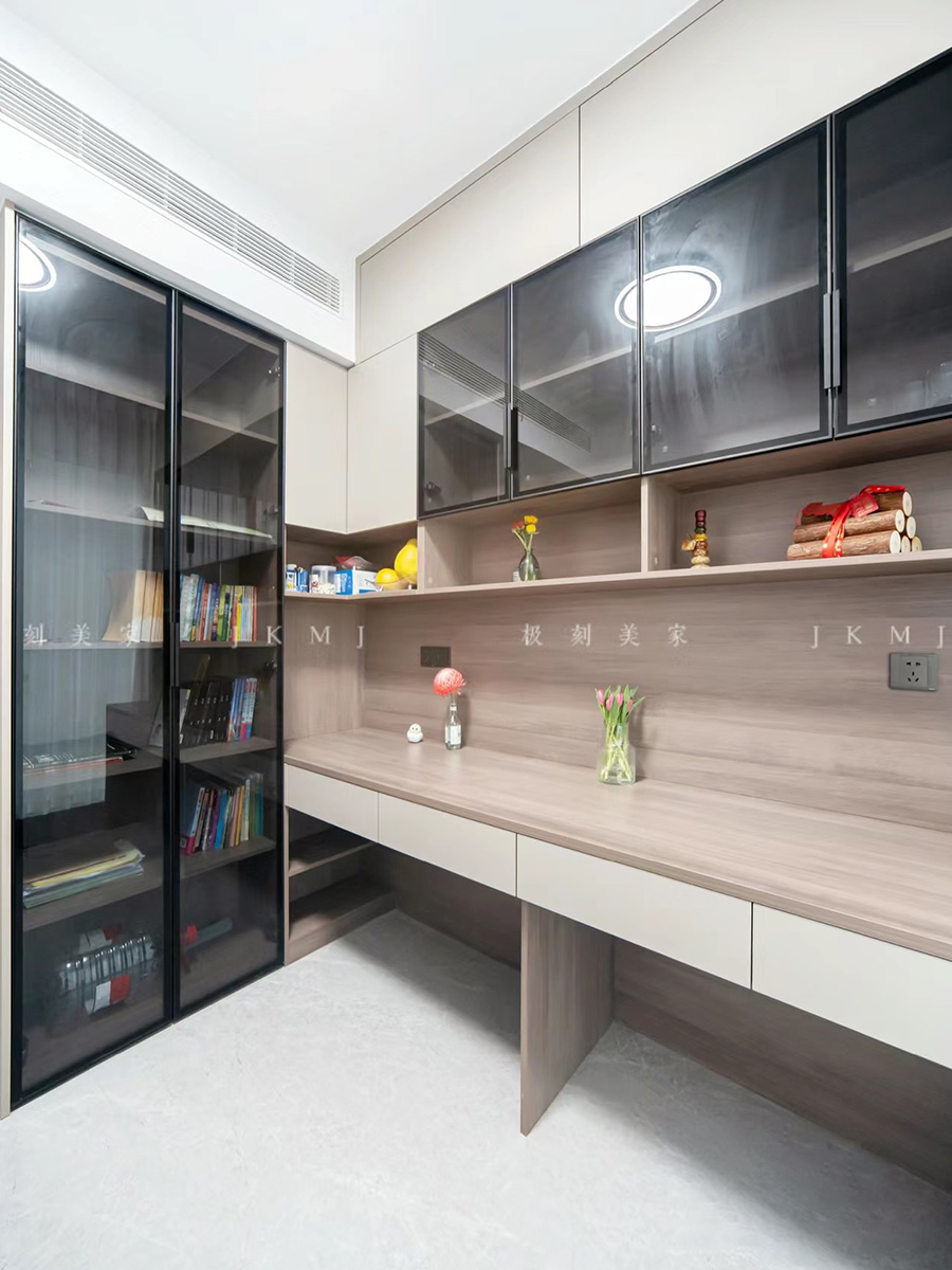 玻璃柜门的融入,减少厚重感,让整体更有层次感