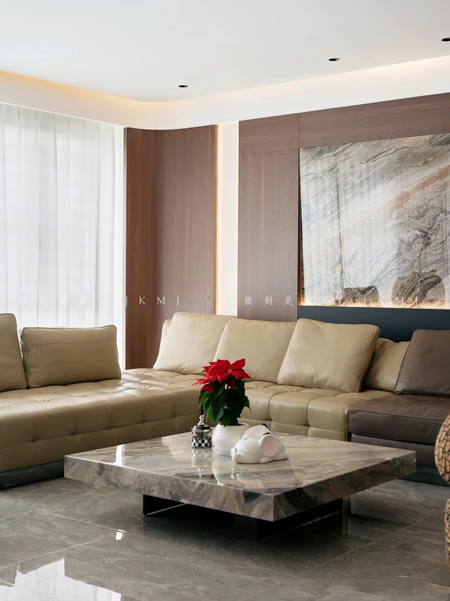沙发背景和电视背景均采用岩板设计,简单又充满设计感