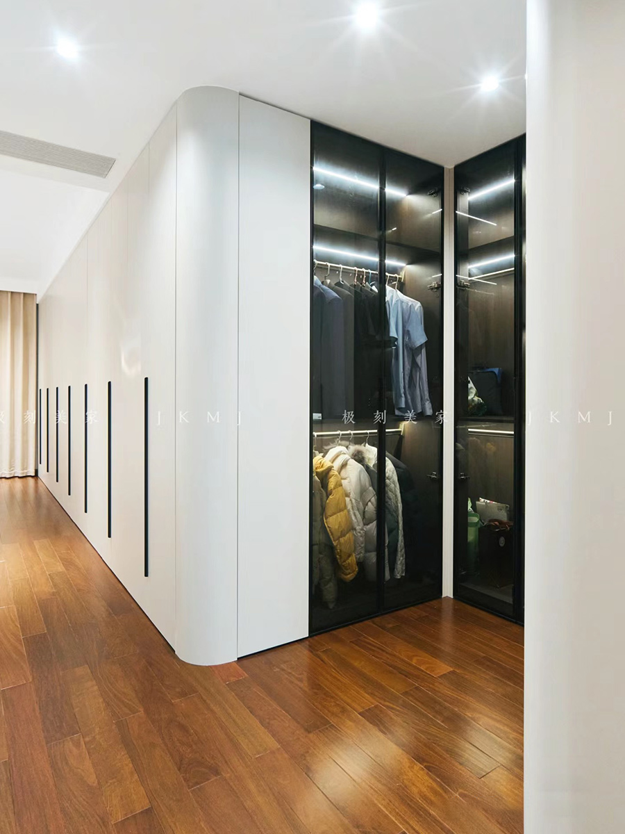主卧利用空间动线做满墙衣柜,充分利用空间做收纳