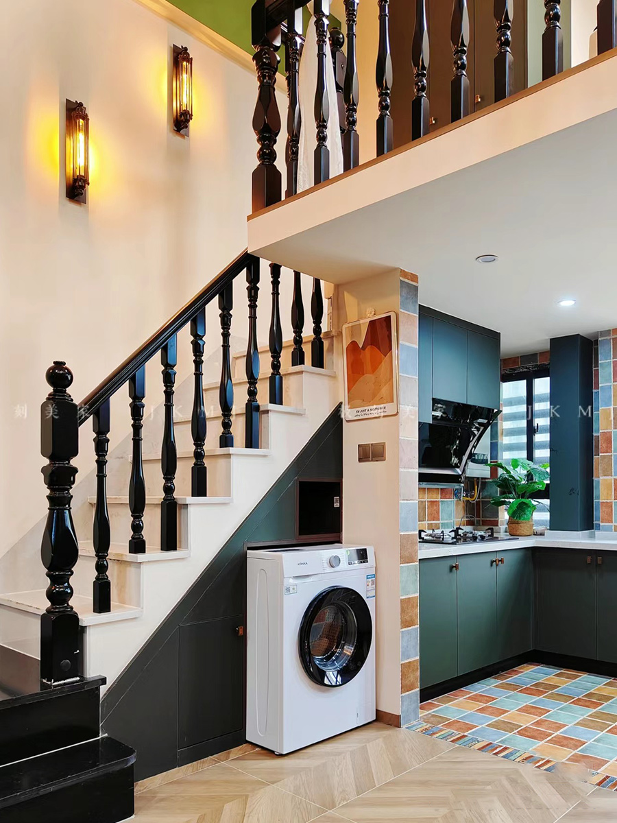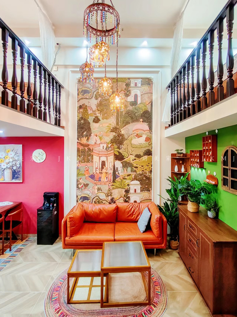 两房中间做挑空设计,随处可见的挂画使整体更有艺术气息
