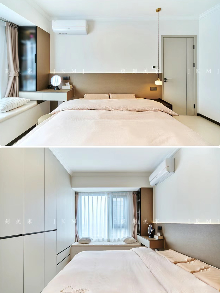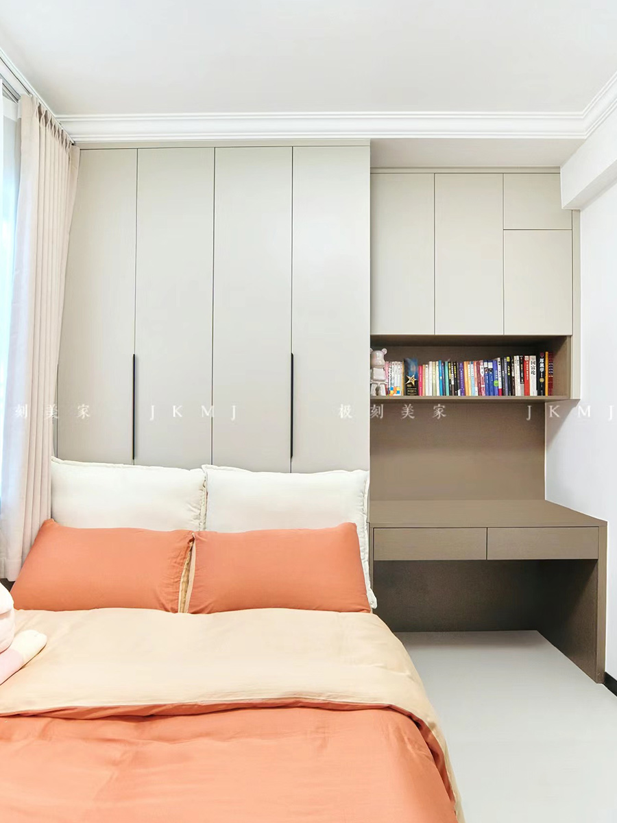 主卧书柜都做了衣柜书桌一体化设计,更适宜学习和办公