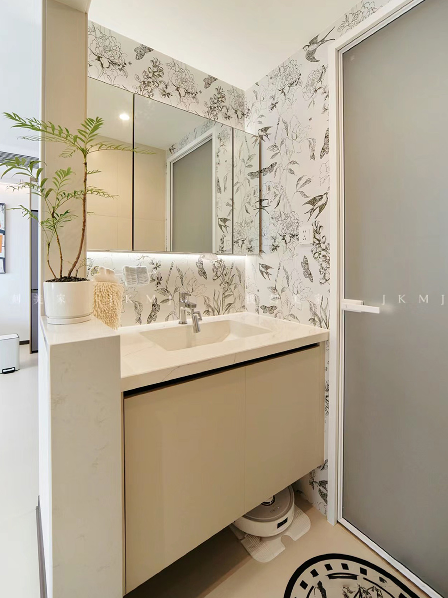 玻璃柜门的融入,减少厚重感,让整体更有层次感