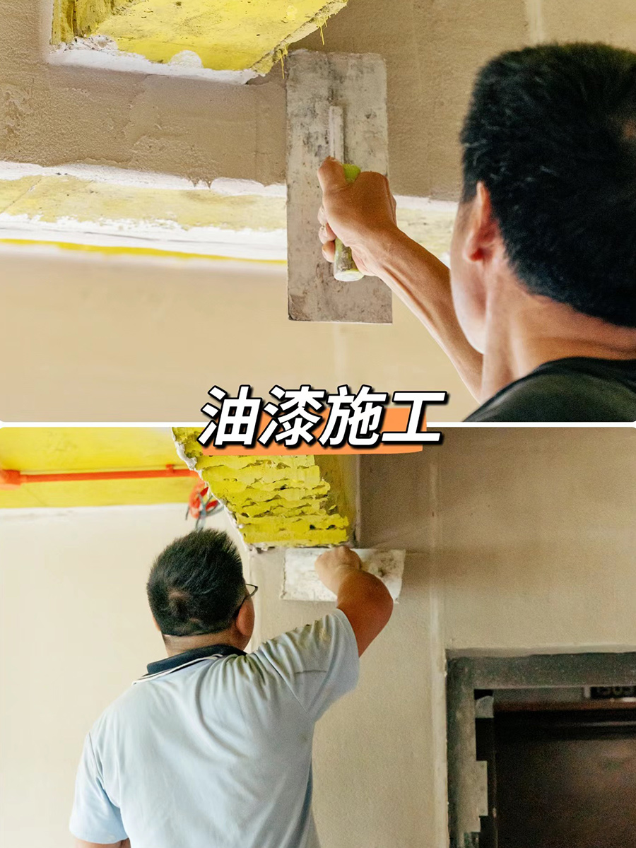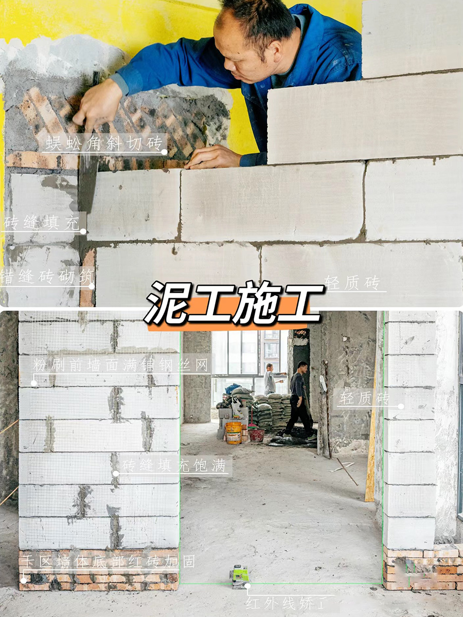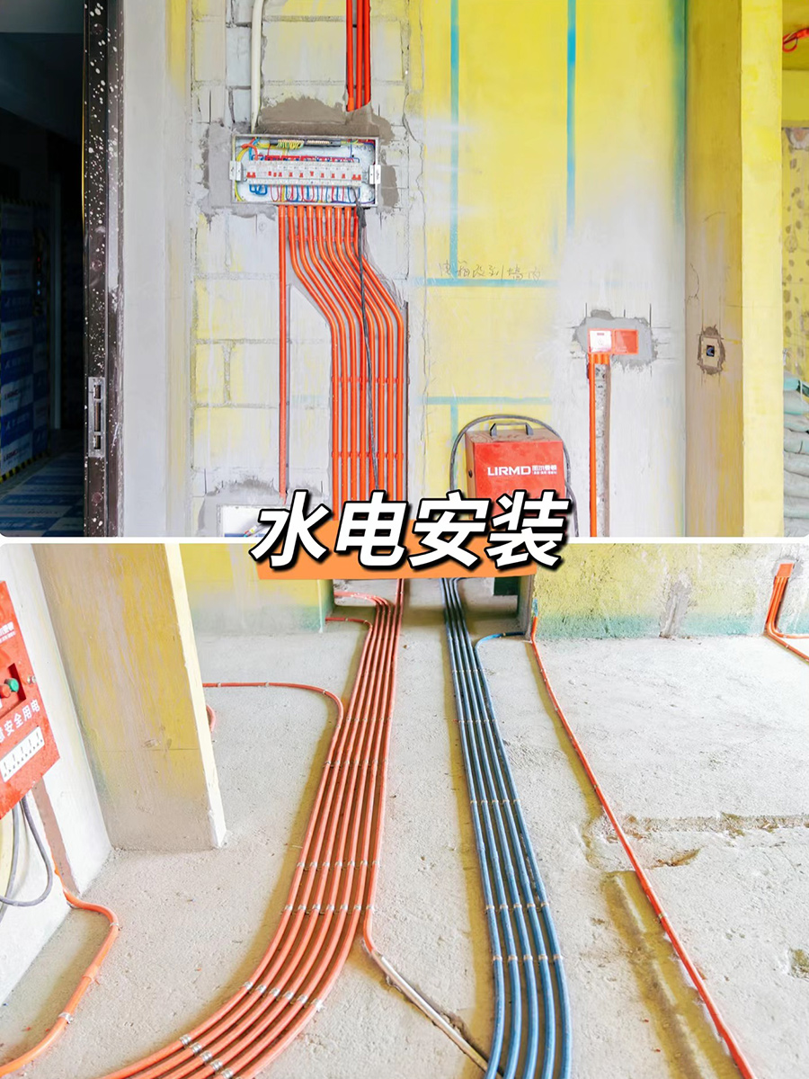 量房复尺→确定方案→水电安装→泥工施工→工厂下单→木工安装→墙漆施工→实时监管报备