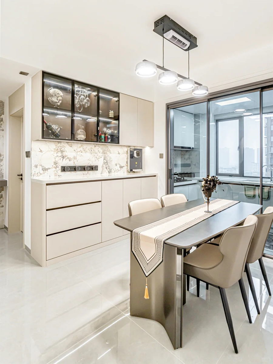 客餐厅不做复杂灯饰,主灯+氛围灯带装饰,让空间开阔,视野明亮