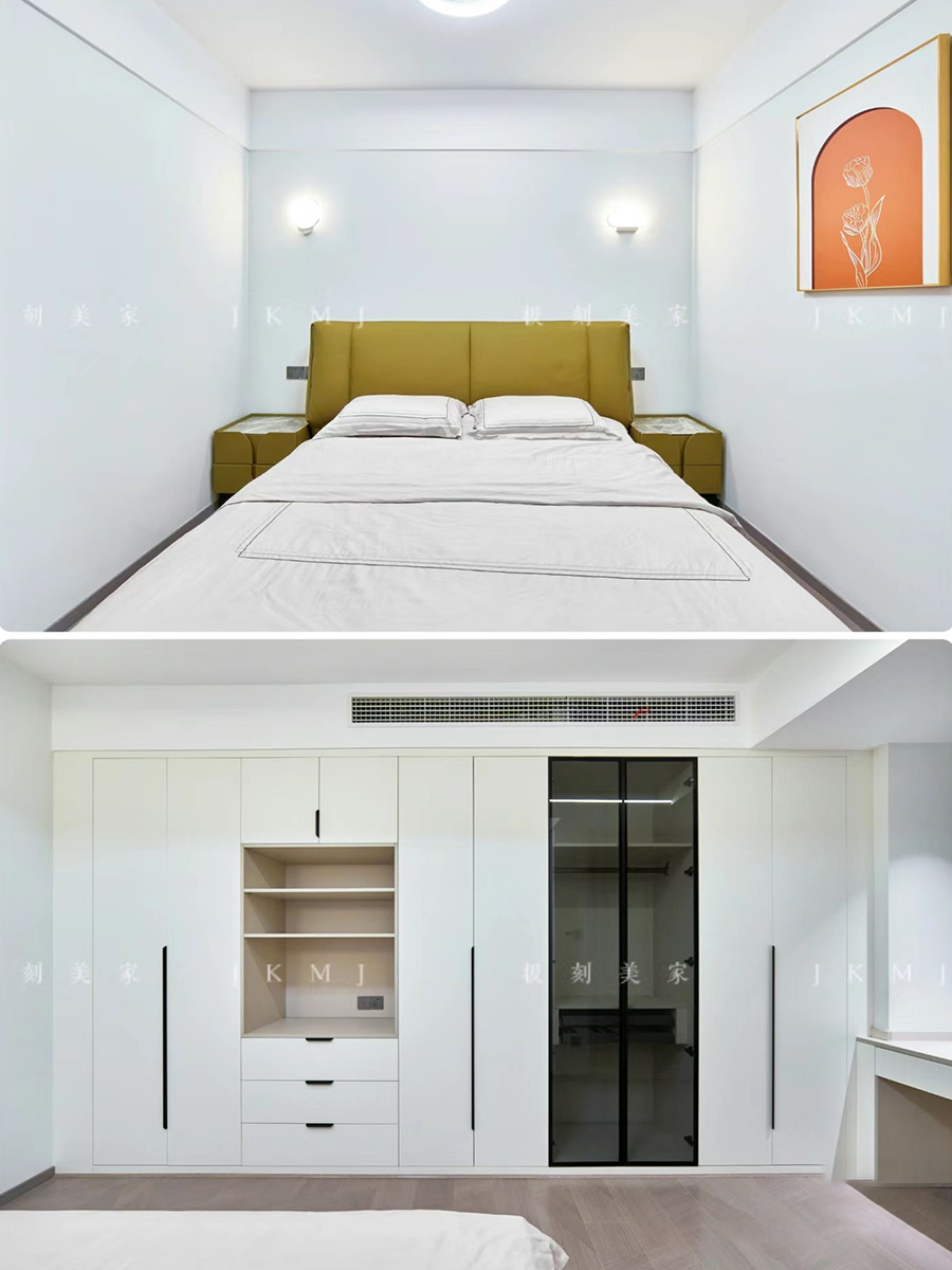 全屋以浅色系为主色调,象牙灰+珍珠白的柜子,整体风格更统一