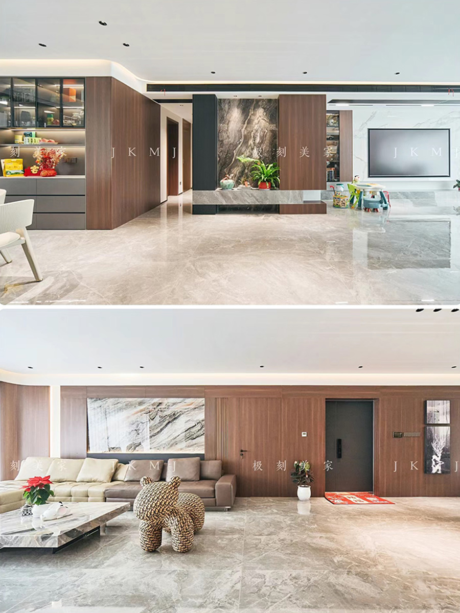 沙发背景和电视背景均采用岩板设计,简单又充满设计感