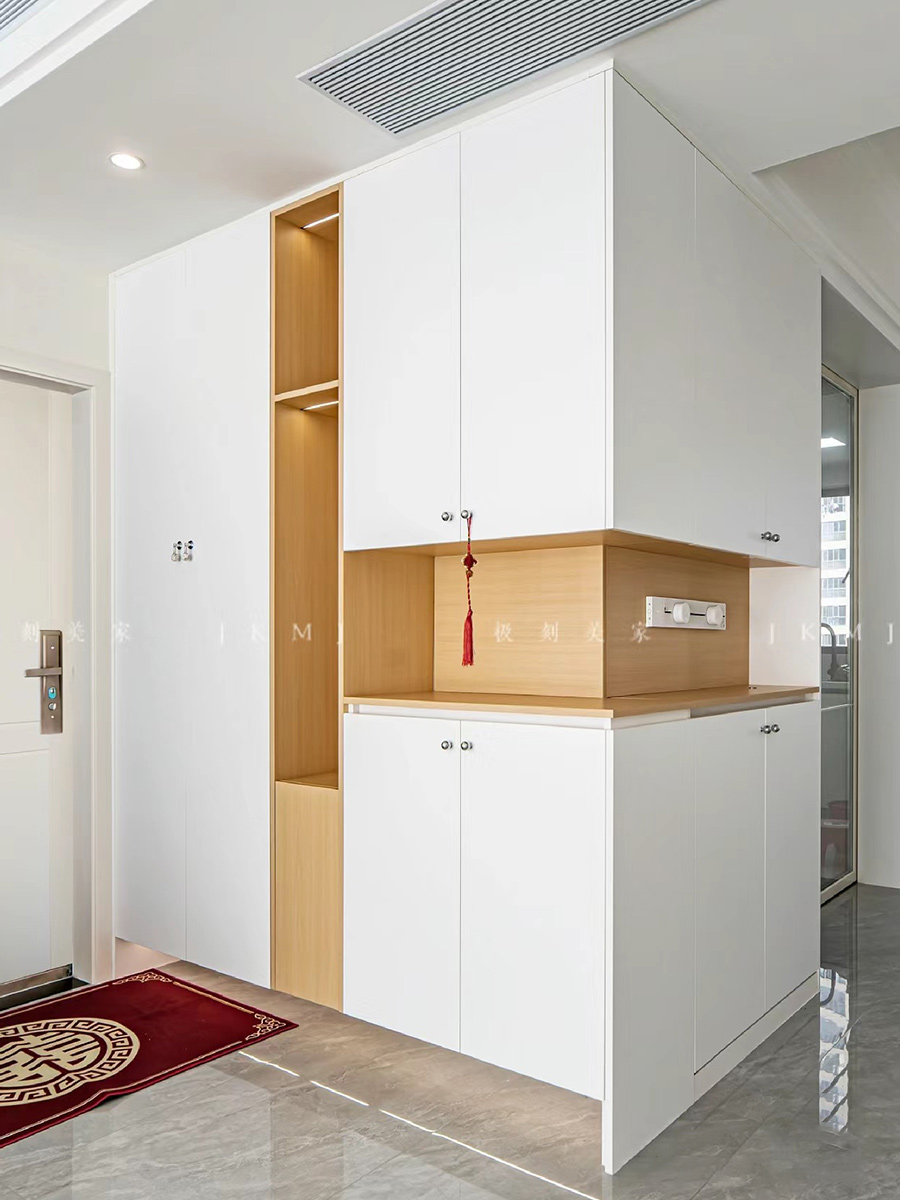 入户柜与餐边柜形成L型设计,更大限度的利用空间
