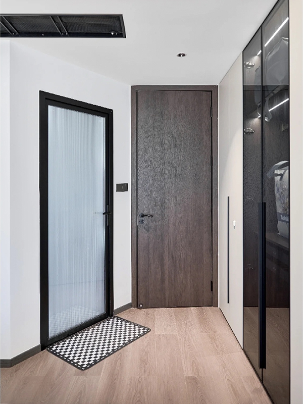 全房共定制了8个柜子,柜体采用足18厚杉木芯板,柜门采用LSB板PET肤感柜门,一门到顶,五金使用原装进口的百隆五金