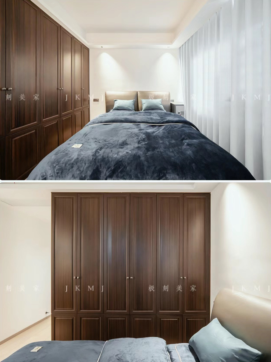 全屋高端定制:柜体板材18厚杉木实芯板,柜门有pet肤感、高光、超晶、五金使用原装进口奥地利百隆五金