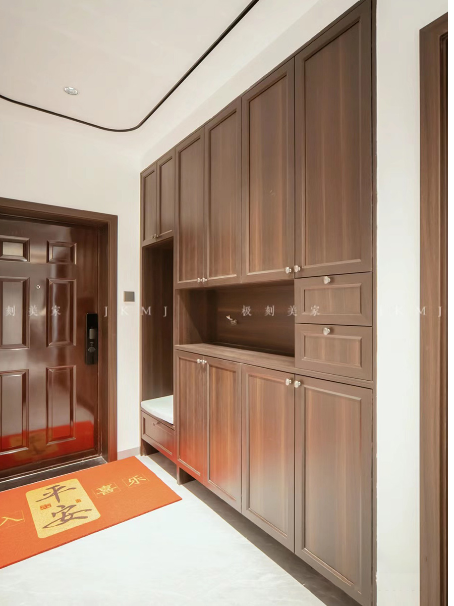 柜体采用烟熏橡木加造型的设计,全屋同款同色同造型设计,整体统一