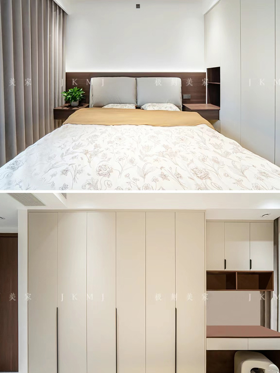 全屋高端定制:柜体板材18厚杉木实芯板,柜门有pet肤感、高光、超晶、五金使用原装进口奥地利百隆五金