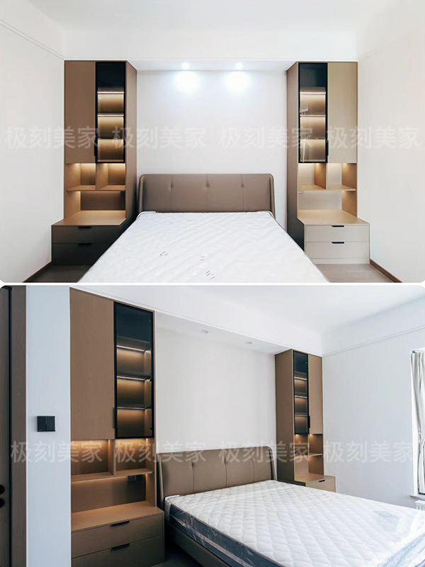 定制床头收纳柜,搭配玻璃门窗,减少厚重感