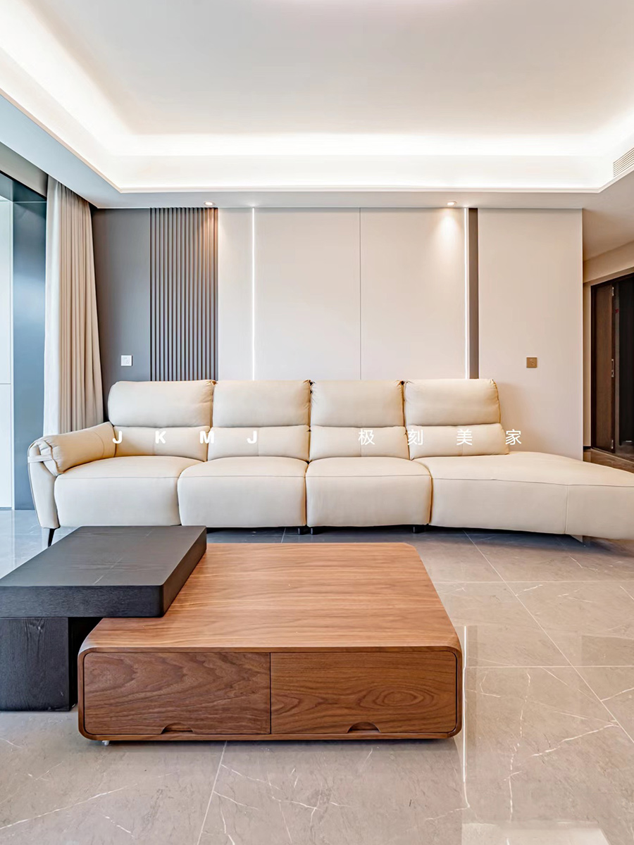 采用济州灰+象牙灰的颜色搭配,搭配精装房原本的色系,整体颜色和谐统一