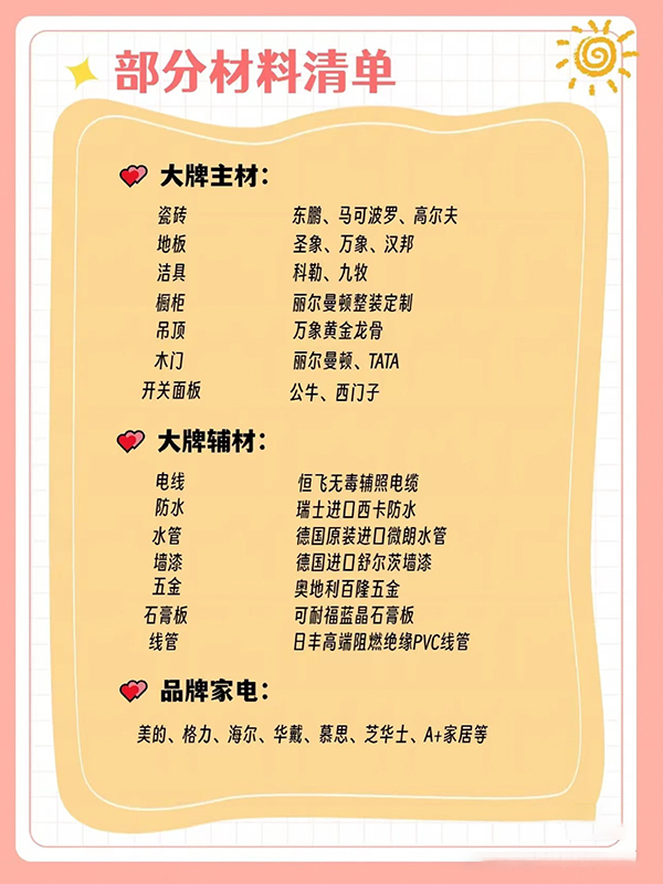 品牌主辅材,确保工程质量,打造环保、品质、美观一体化