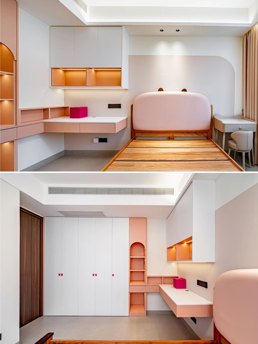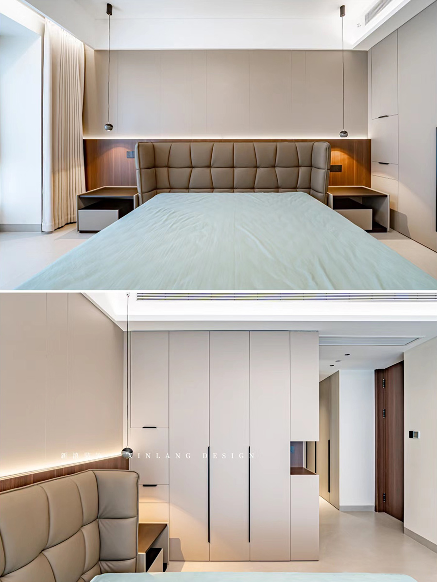 全房门墙柜一体,整体色调统一和谐,搭配现代风格软装家具,耐看又耐用。