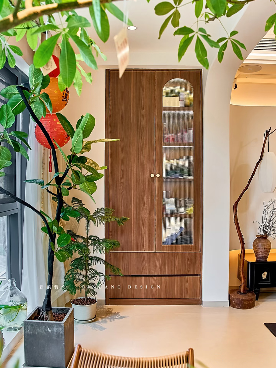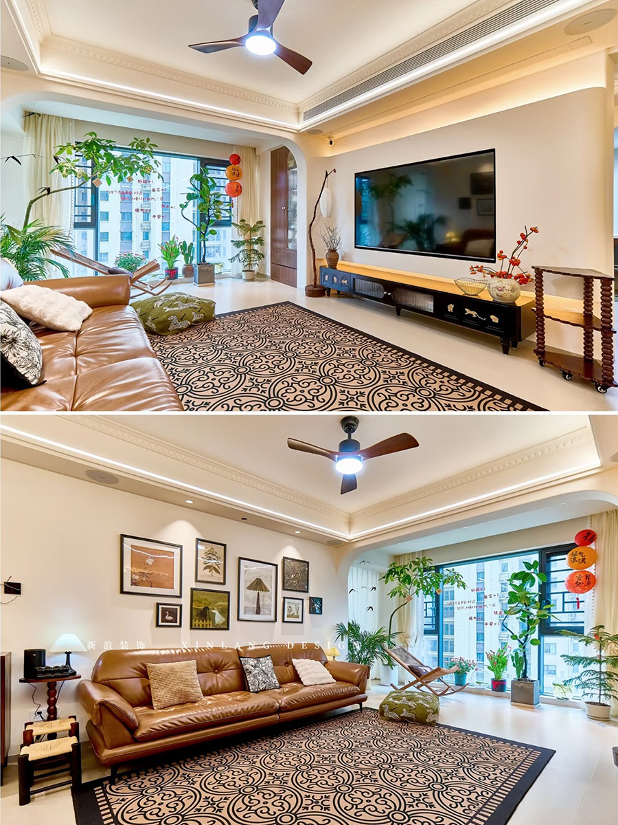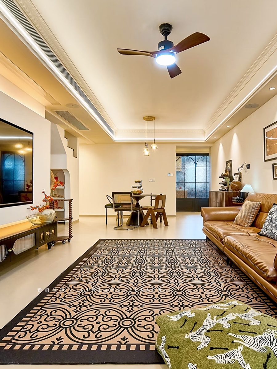 复古挂画、品味绿植、风扇吊灯、有艺术感的软装饰品的点缀,让空间层次分明,更有氛围感