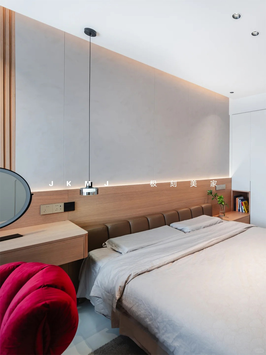 主卧去掉不必要的、保证留白,维持自然纯洁,极具生命力。欢聚时热闹非凡,独处休憩时温馨治愈。