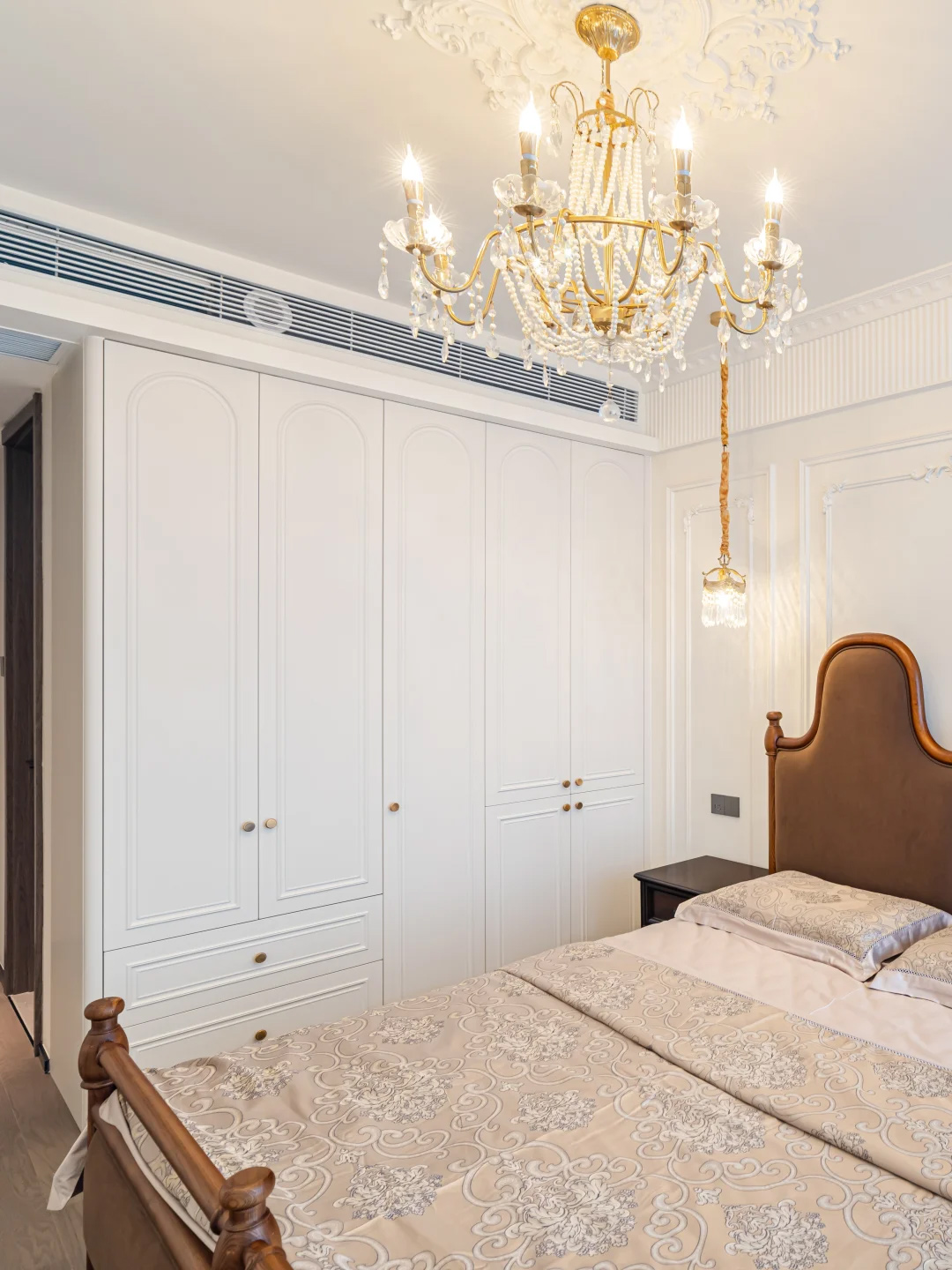 主卧也太会了吧!水晶蜡烛灯+主卧床头吊灯,宫廷雍容华贵感直接拉满