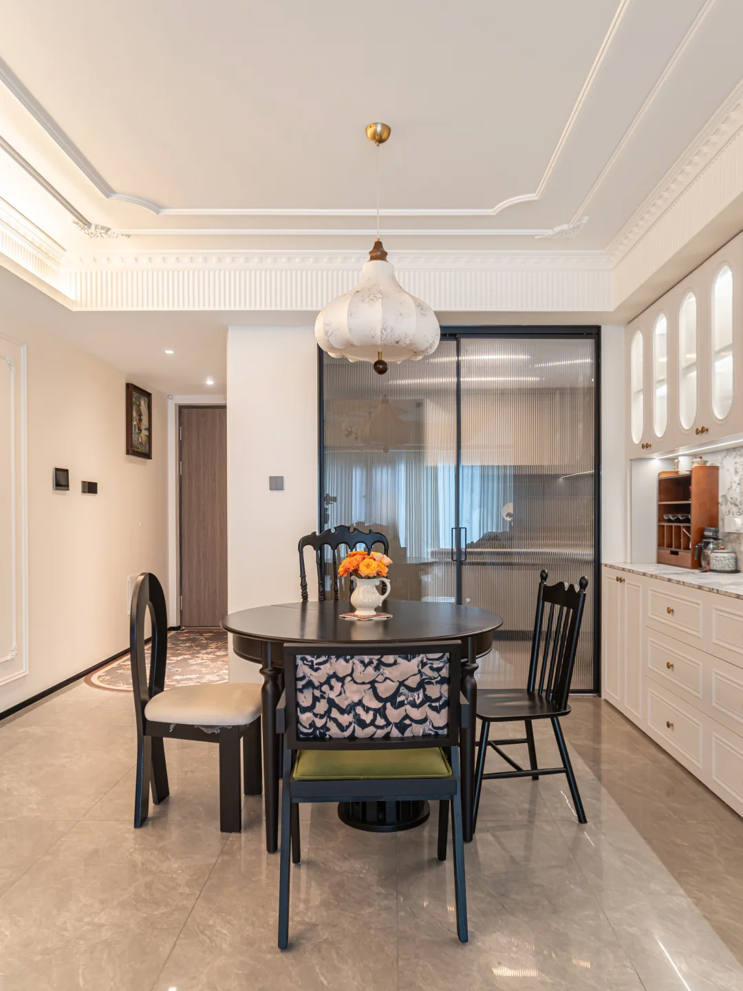 花形壁纸+长虹玻璃的组合,复古感直接拉满~