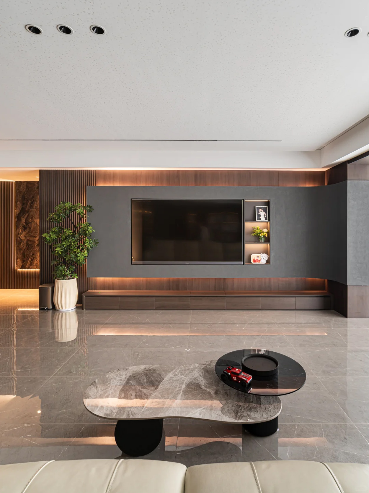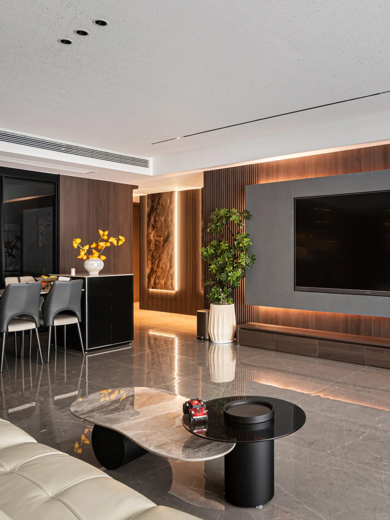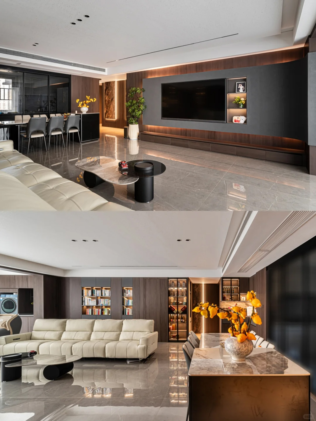 客餐厅弃主灯搞无主灯!没压迫感+顶面超干净,隐藏灯带+筒灯打光,光线柔到犯规,氛围感直接焊死