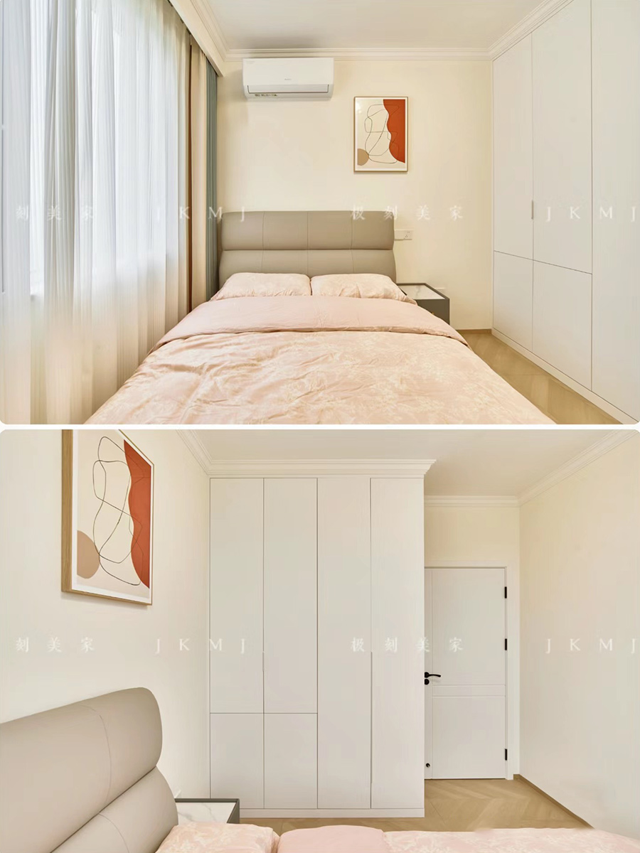 电视背景墙和师傅背景墙均采用法式线条,凸显法式浪漫的氛围感
