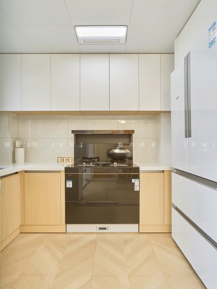 全屋木纹砖通铺,同色系柜体与之相呼应,打造全屋同款同色同造型