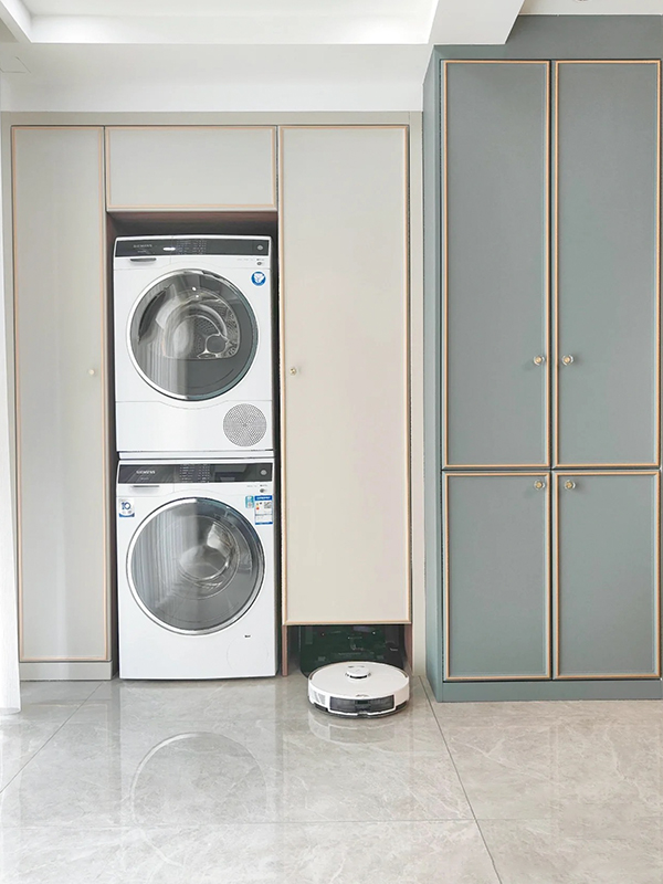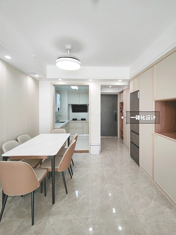 入户柜换鞋区+鞋柜收纳+冰箱柜嵌入柜+餐边柜做一体化设计,整体性能更好,更显大气整洁,非常nice!!