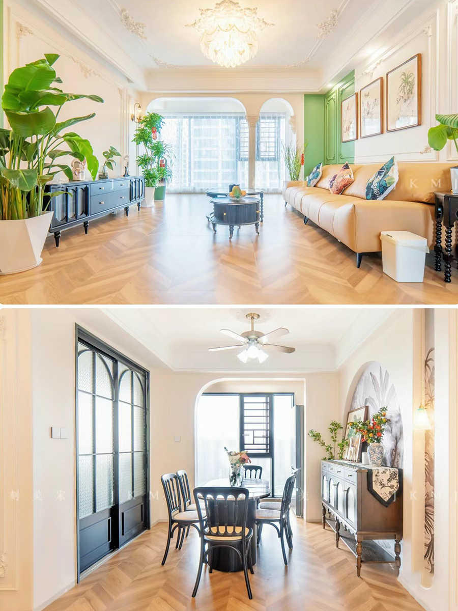 石膏线、角花的运用,搭配复古木质家具,更有复古浪漫的氛围感