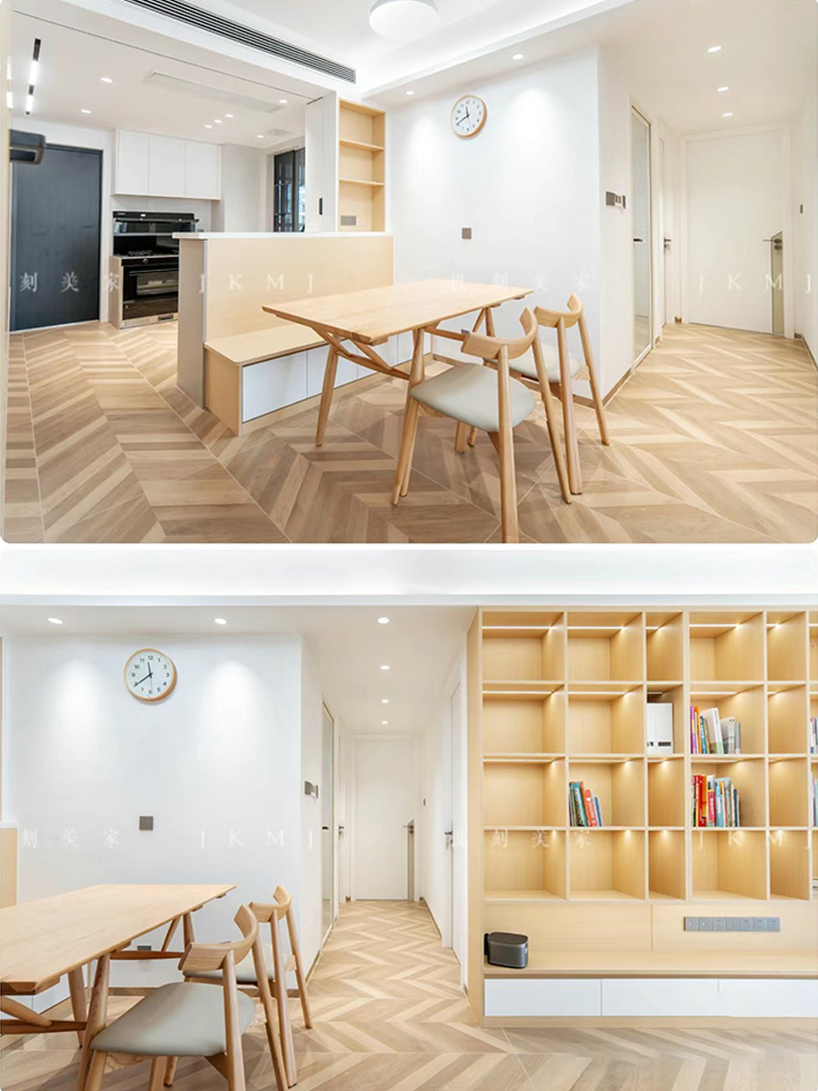 门墙柜一体化设计,打造全屋同款同色同造型,木饰面的融入,整体性真的绝