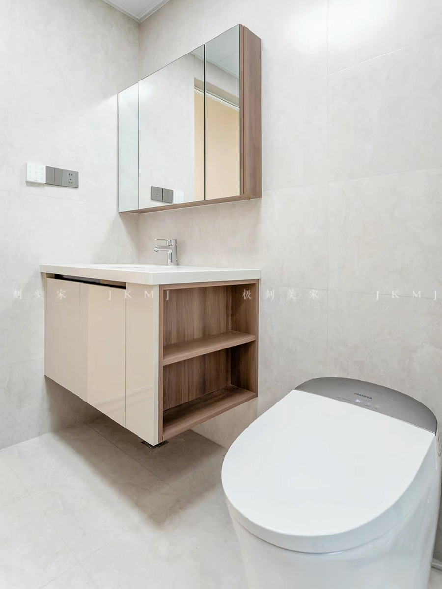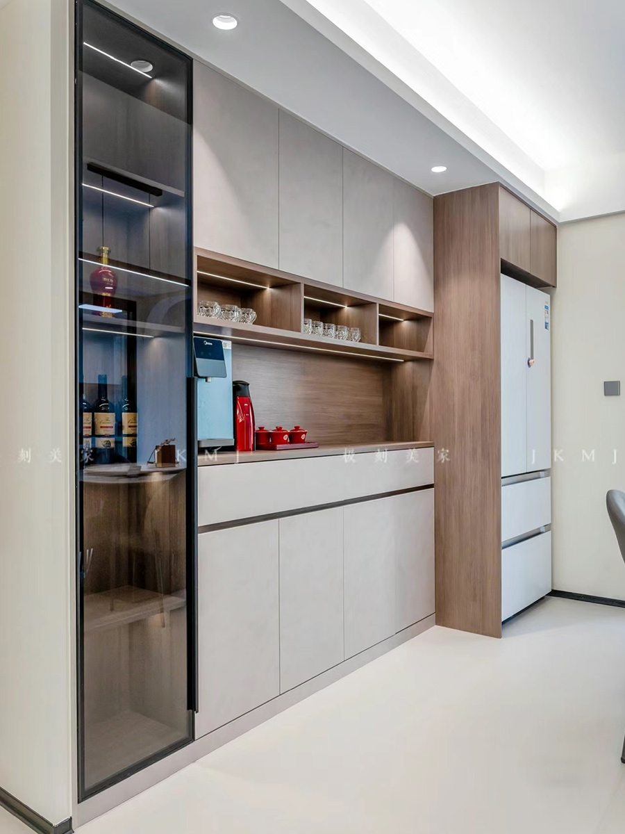 玻璃柜门搭配木柜门,减少厚重感增加层次感
