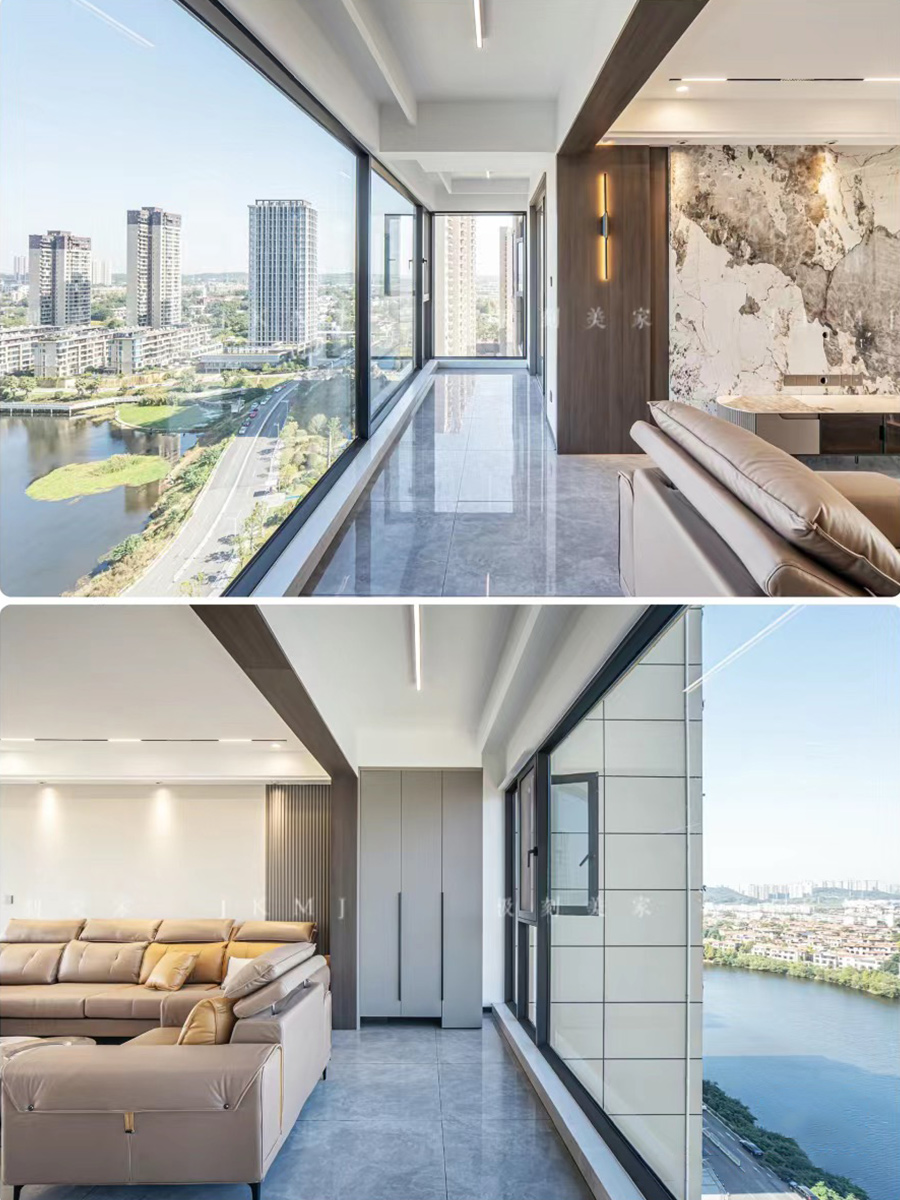 一字型阳台搭配超大落地窗,江景房的优势一览无余