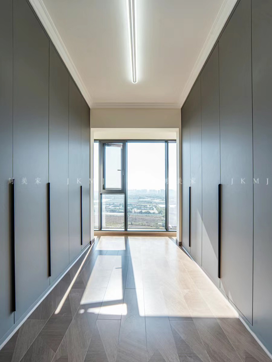 主卧延用灰色系,做整墙柜子,满足你的收纳需求