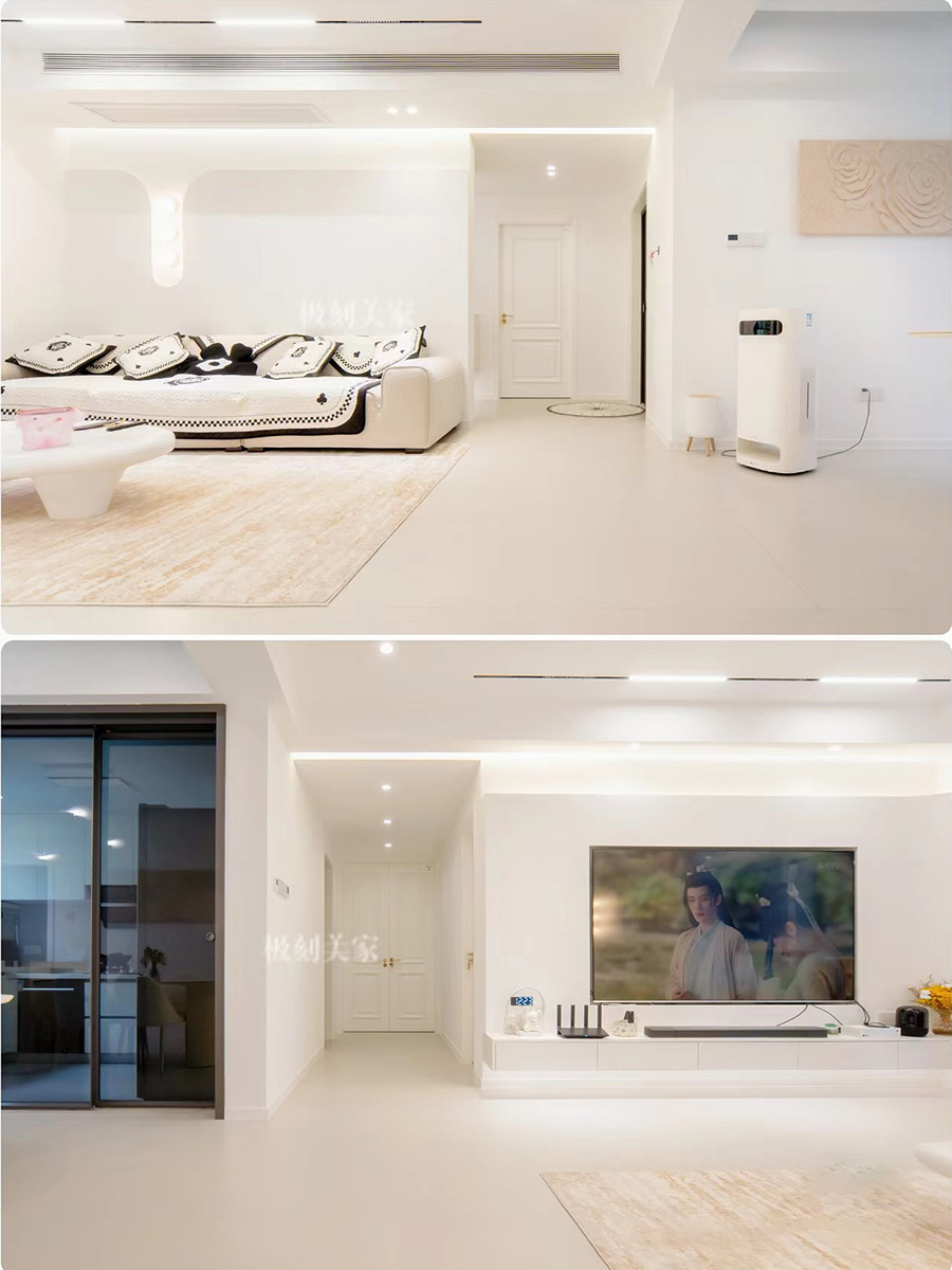 悬浮电视柜设计,白色极简运用的恰到好处