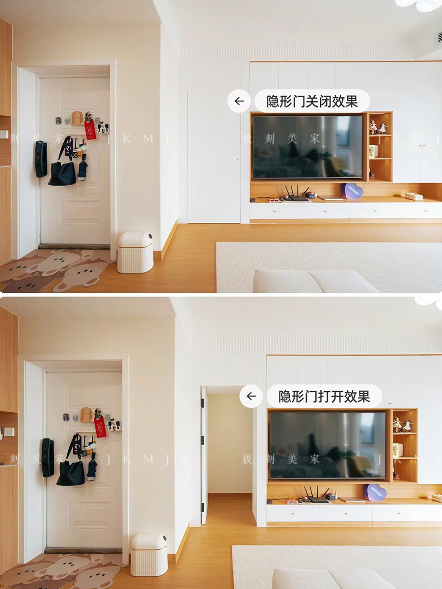 电视背景墙旁做隐形门设计,简单又好看