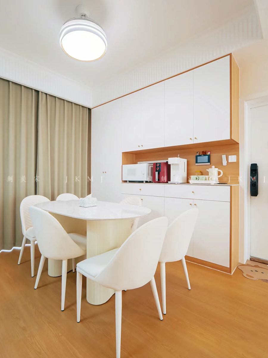 做满墙电视背景柜和餐边柜,满足收纳的同时兼具颜值