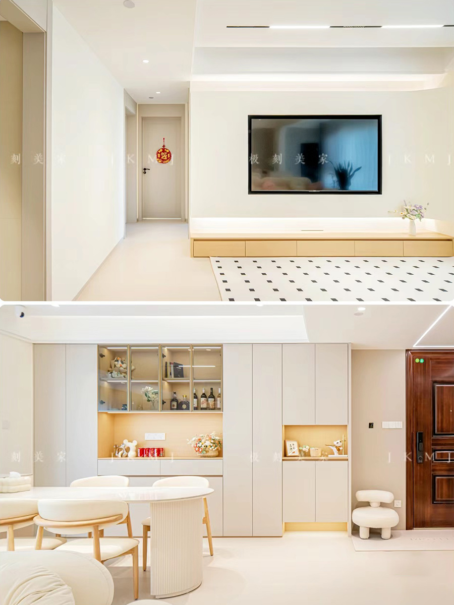 全屋整体运用大面积的奶白色,搭配原木设计,打破传统的奶油风